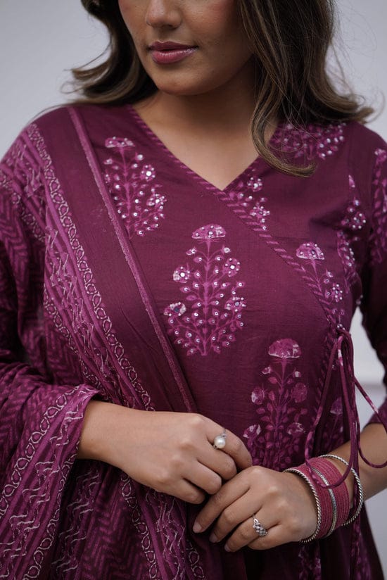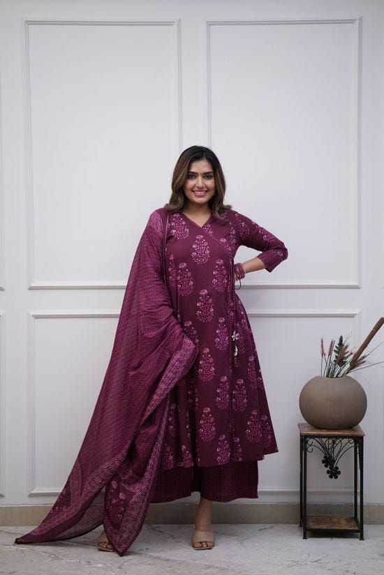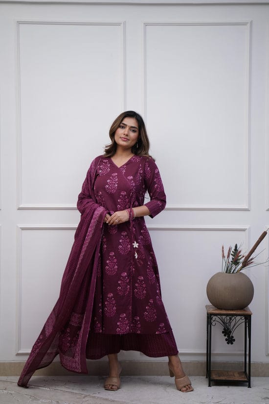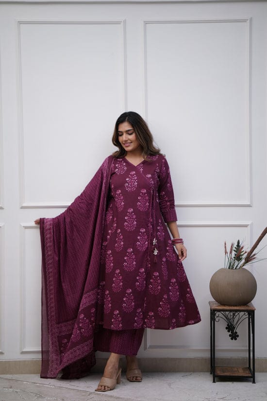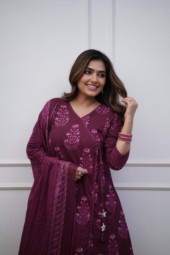Anarkali Kurta Set With Angrakha Style For Women(MAROON)