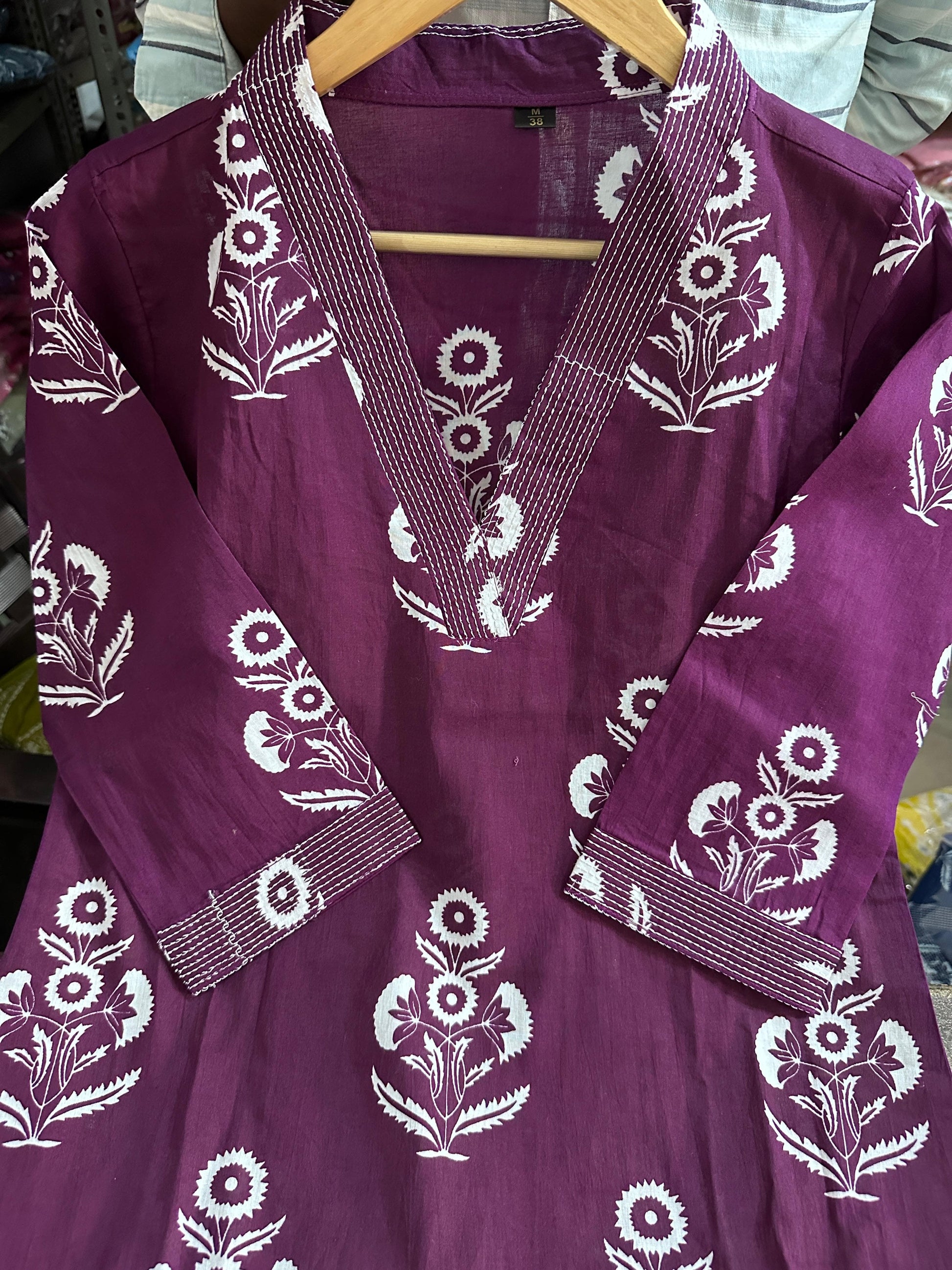 Pure fine Katha Cotton fabric Straight kurti with pant and dupatta.