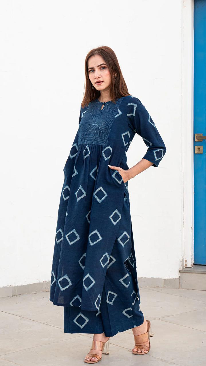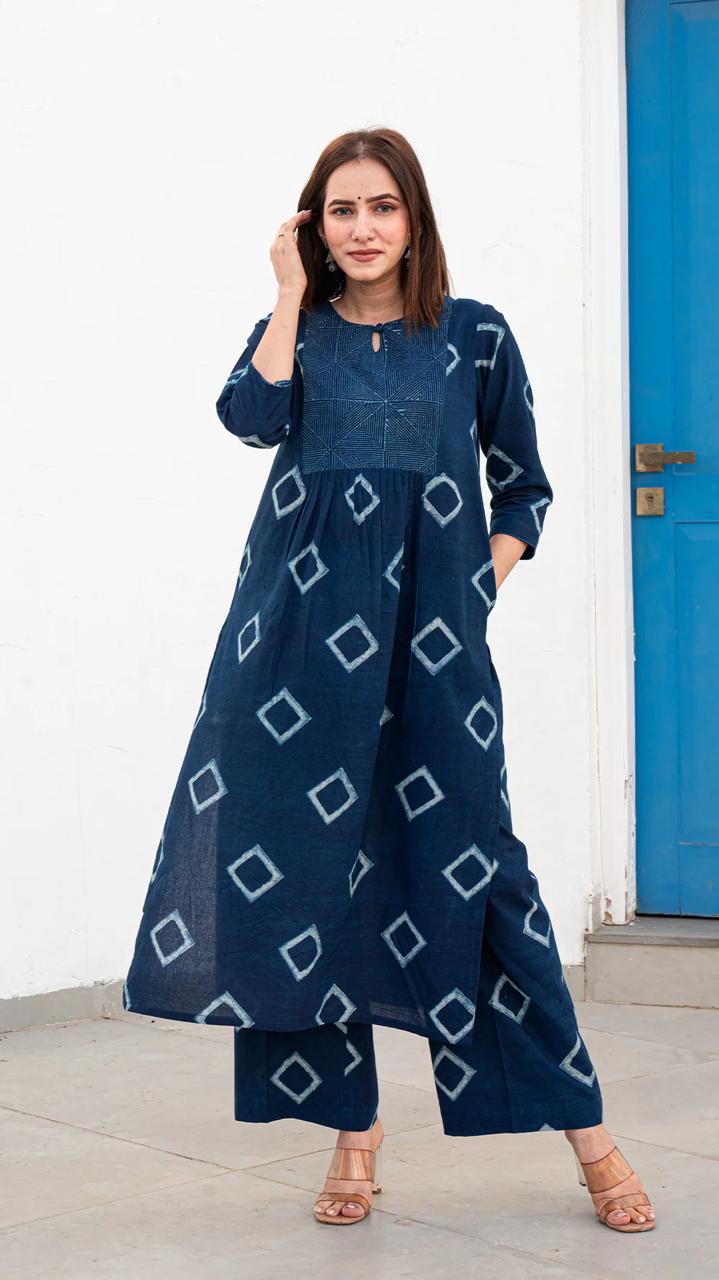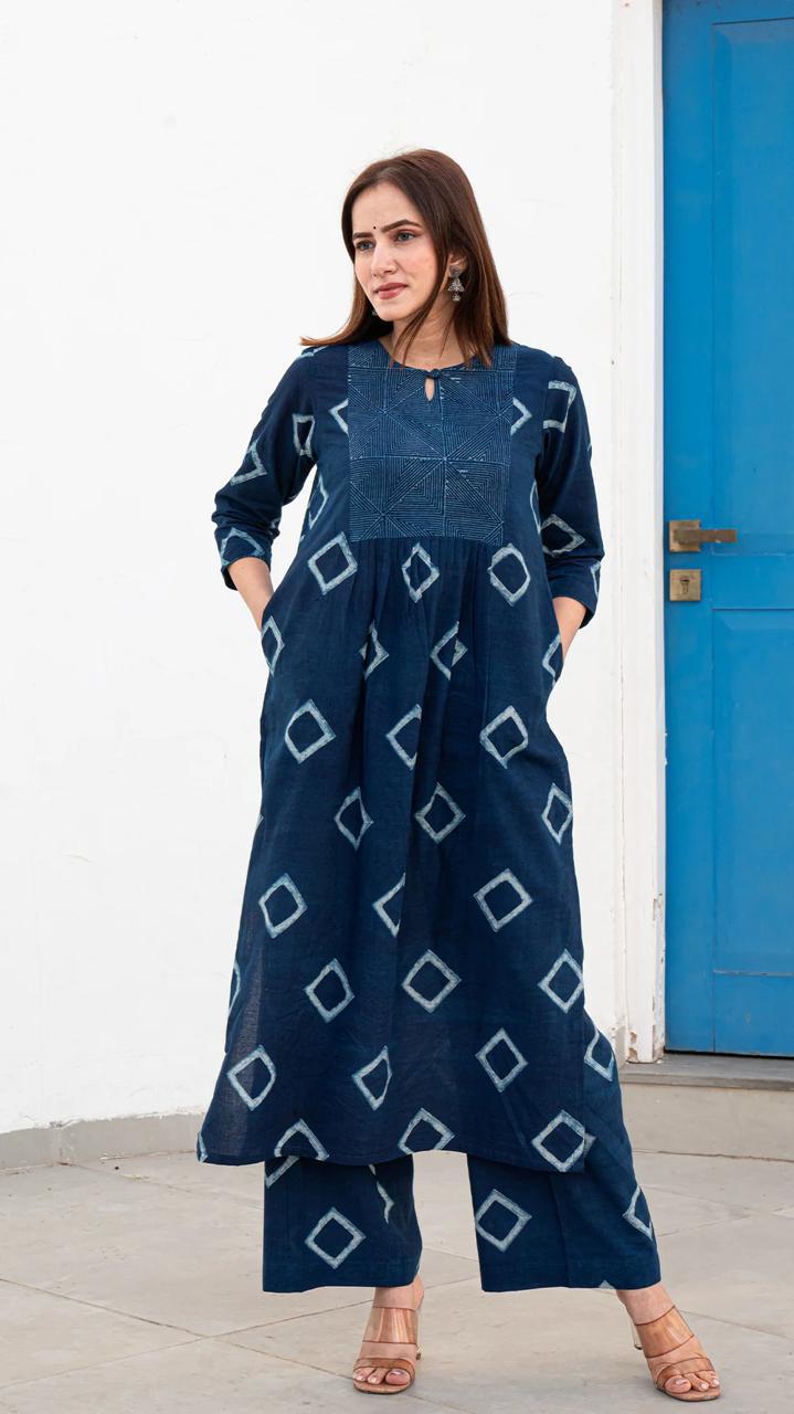 Pure fine Katha Cotton fabric Straight kurti with pant and dupatta.