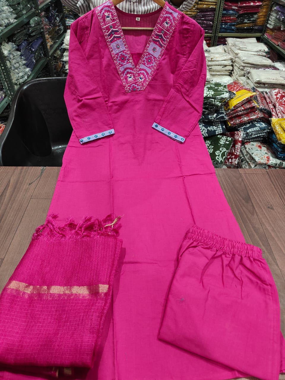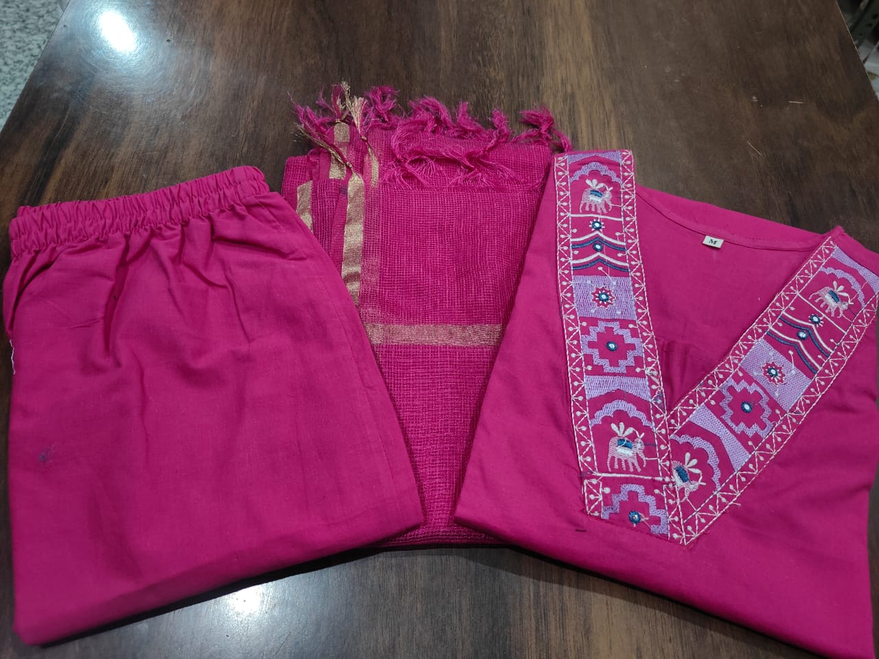 Pure fine Katha Cotton fabric Straight kurti with pant and dupatta.