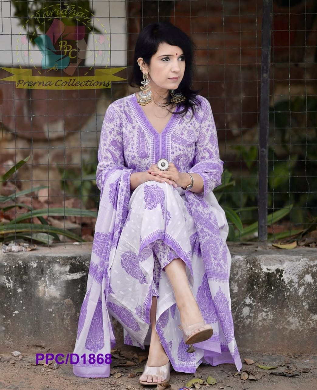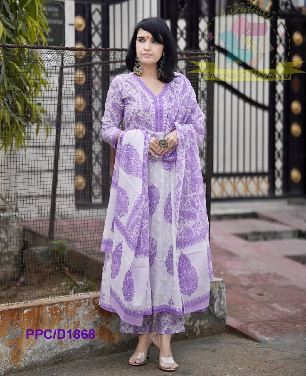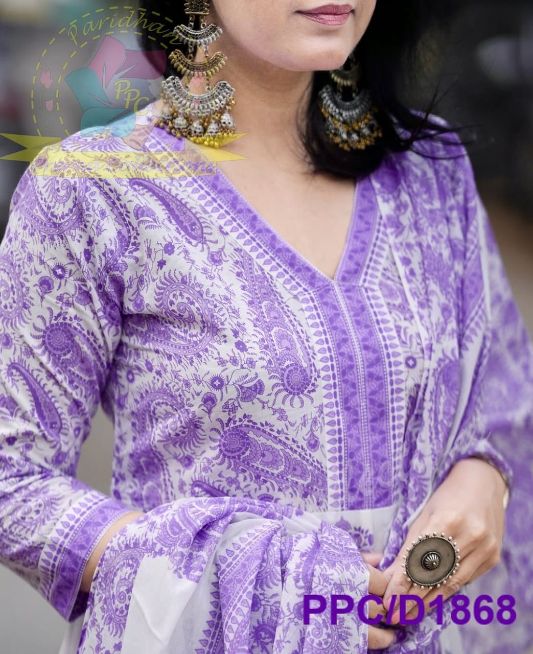 Pruple Cotton Flared Women Suit