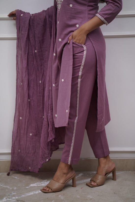 Bandhej Cotton Embroidered kurta with Pant & Dupatta Set For Women