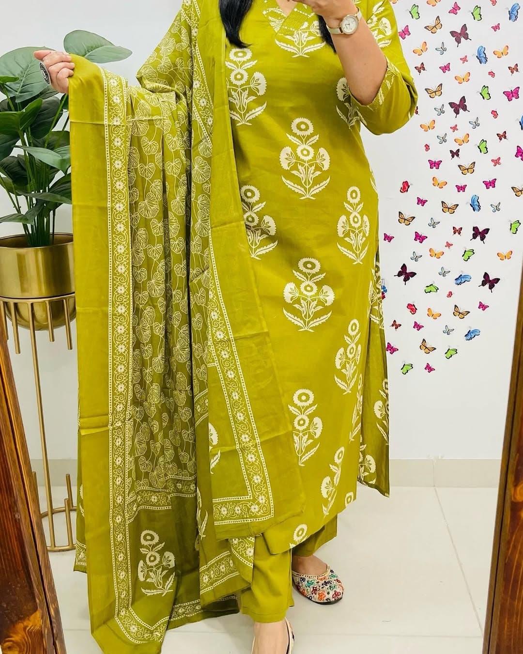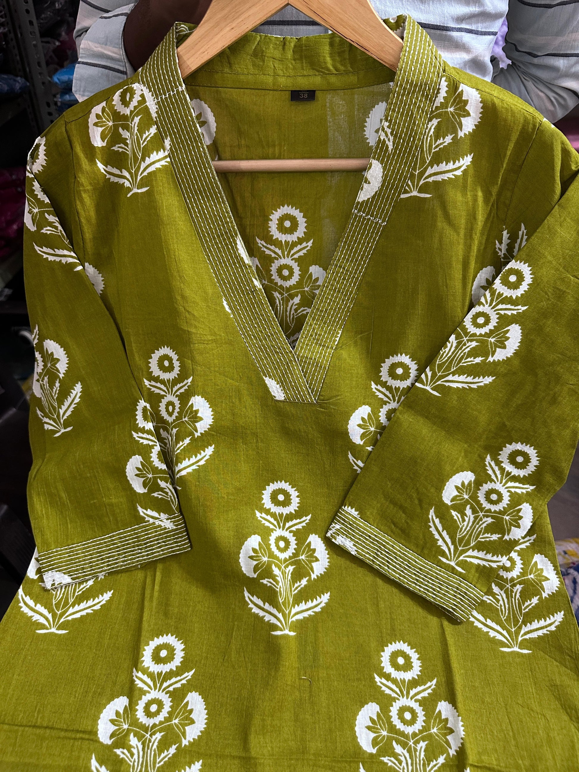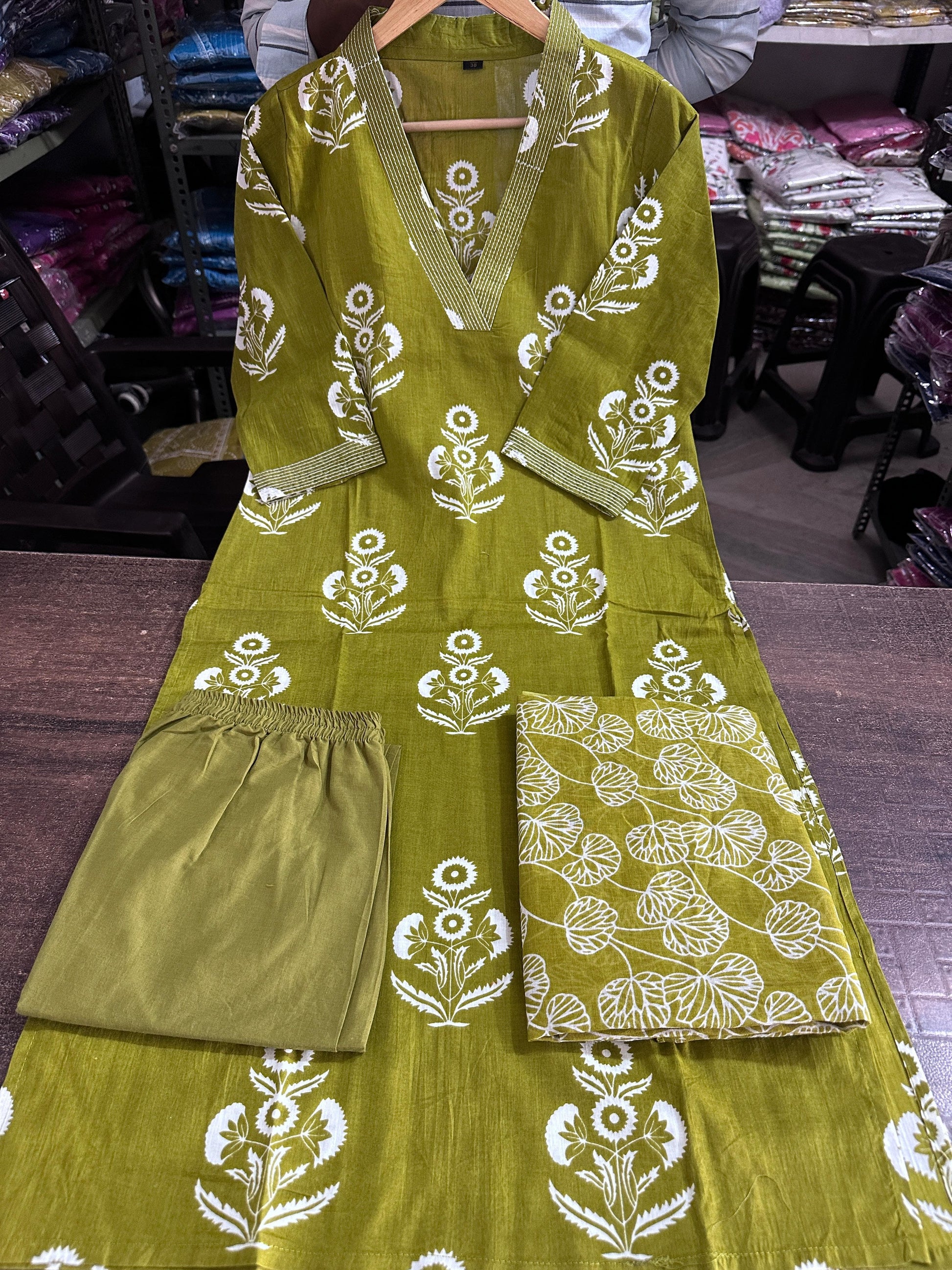 Pure fine Katha Cotton fabric Straight kurti with pant and dupatta.